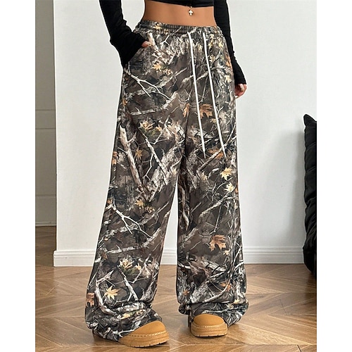 Per donna Gamba larga Pantaloni Dritto Vintage Moda Streetwear Lunghezza intera Misura del girovita medio Floreale Semplice Coulisse Tasca Gamba larga Comodità Traspirabilità Morbido Micro-elastico
