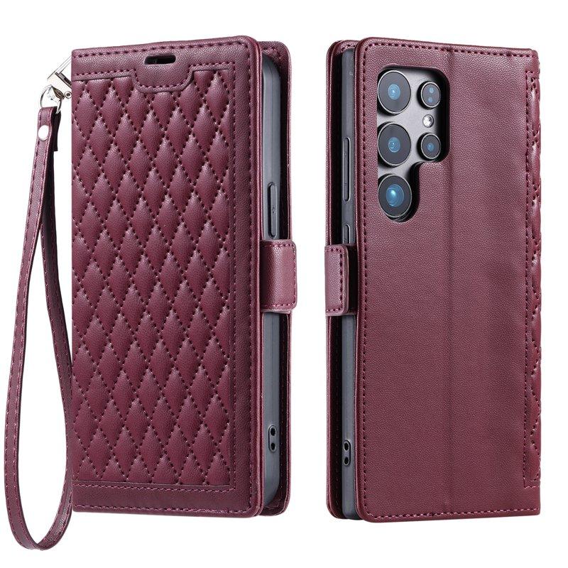 Samsung Galaxy S26 Ultra Fodral Äkta Läder Rhombus - Vinröd