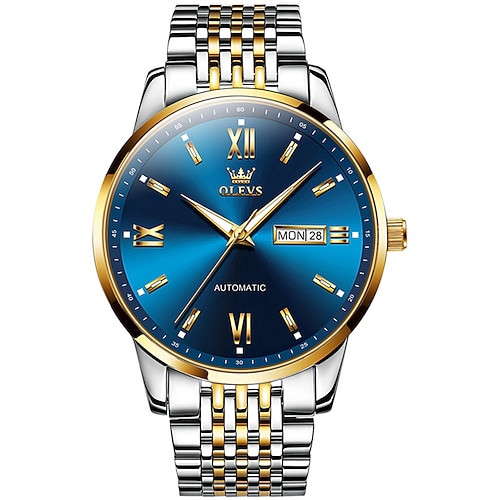 Die neue Olevs Herren-Businessuhr mit Edelstahlarmband, Leuchtzeigern, Kalender und Wochentagsanzeige, automatischem mechanischem Design, römischem Zifferblatt, schlichtem und modischem Design,