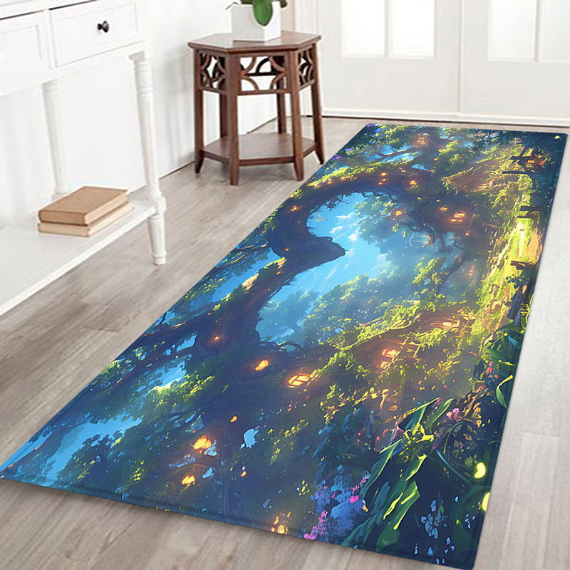 Hallway Runner Rug Plant Flower Pattern Flannel Fabric Printed Home Floor Decoration Mat Anti Slip Soft Door Mat Entrance Bathroom Floor Rug