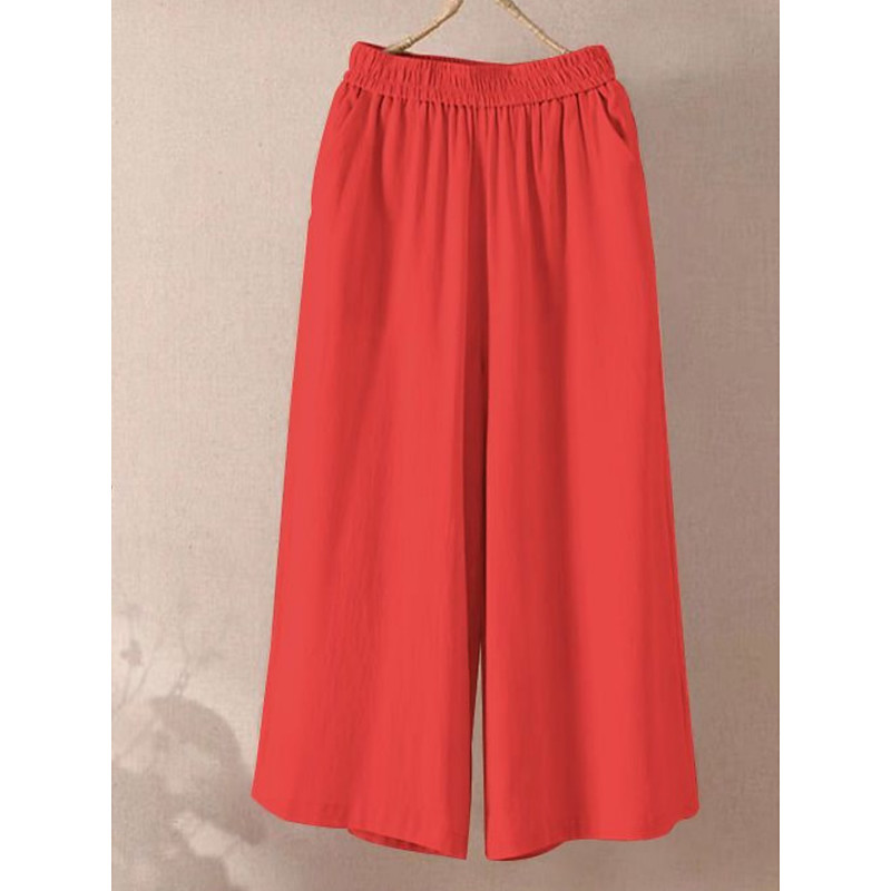 Women's Wide Leg Chinos Vacation Basic Casual Calf-Length High Waist Plain Elastic Waistband Comfy Soft Comfortable Stretchy Outdoor Street Black White Yellow Red Summer Spring Fall Loose Fit