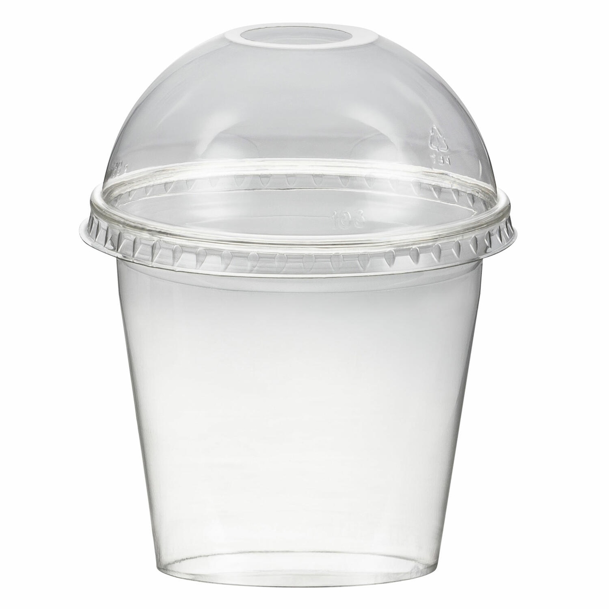 VEPATIM 50x Smoothiesbecher + Domdeckel mit Öffnung 250 ml O 95mm PET glasklar