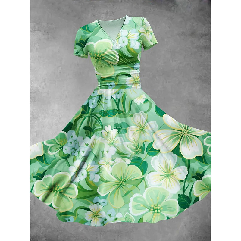 Women's Midi Dress Wrap Dress A Line Dress Vacation Casual Beach Going out Regular Fit Graphic Clover Short Sleeve V Neck Deep Green Green Summer Spring