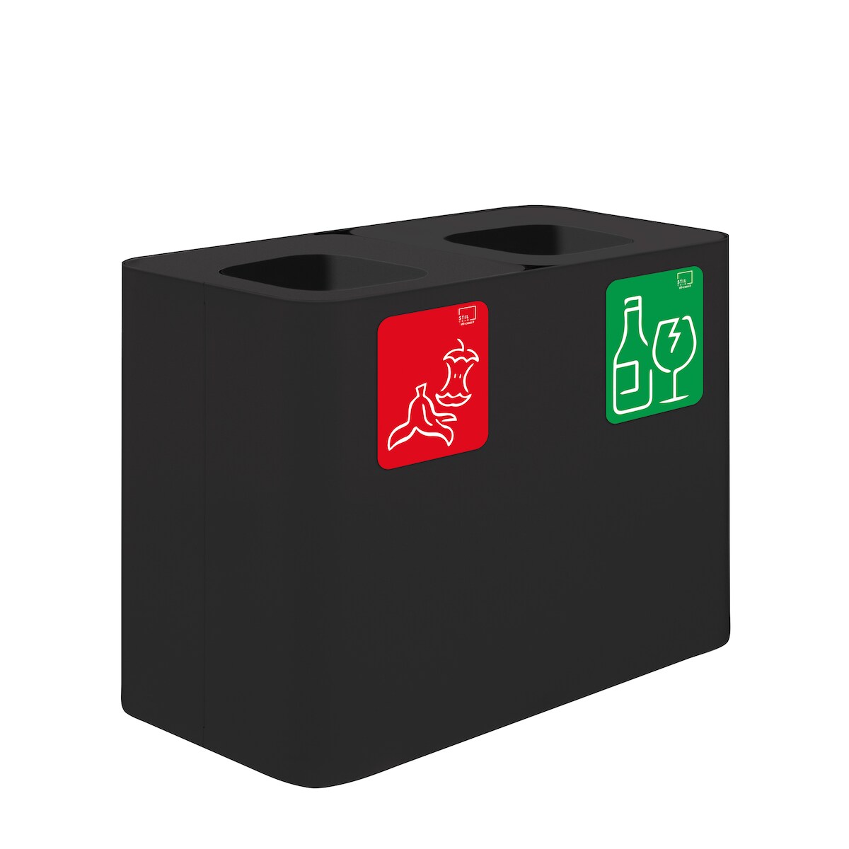 Stil Casa PURE Abfallsammelsystem, lackierter Stahl, 80x38xh. 50 cm, 140 Liter mit zwei Fächern zu je 70 Litern, schwarz.