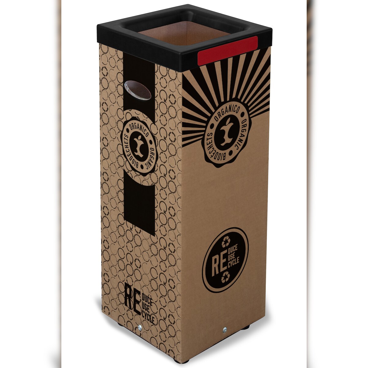 Stil Casa Kartonabfalleimer, 38 x 38 x h. 80 cm, Grafische Bedruckung Organisch, Kunststoffdeckel, Kit mit bunten Aufklebern, Metallboden, 100 Liter.