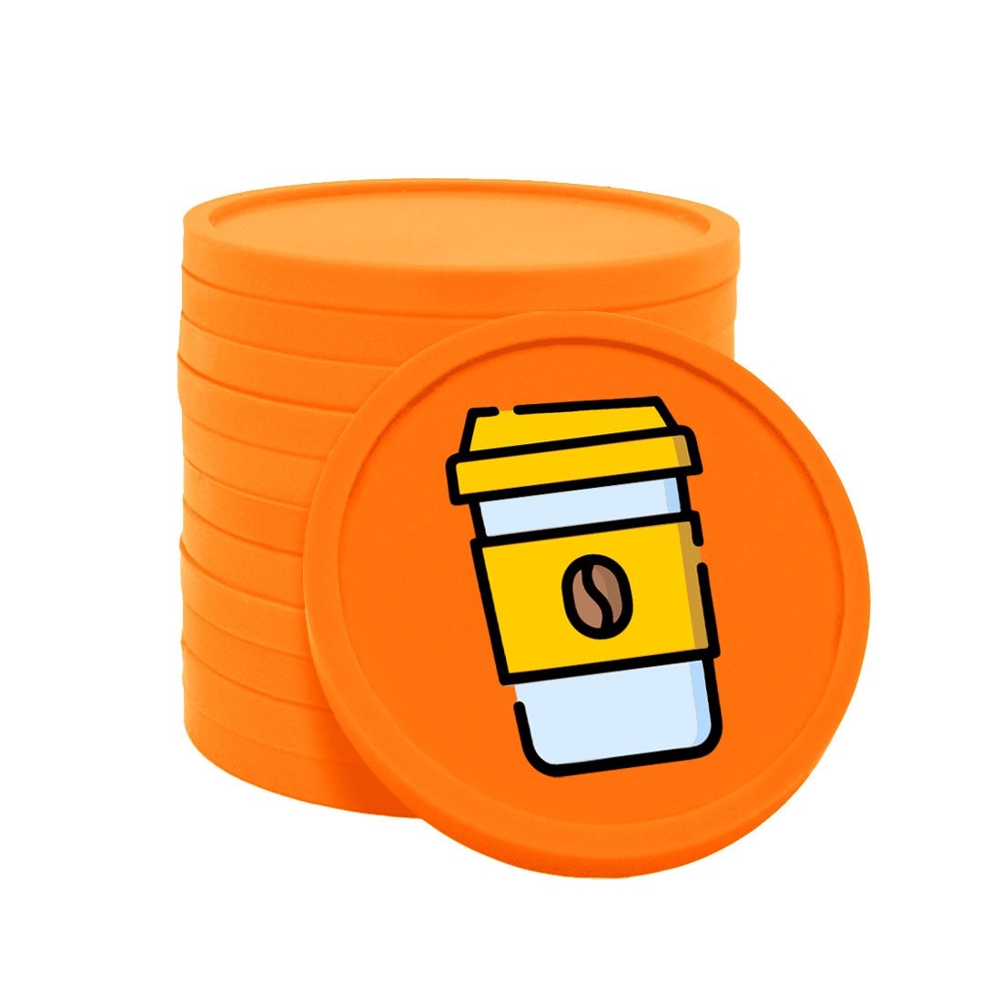 CombiCraft Kunststoff Wertmarken mit Kaffeebecher-Aufdruck in Orange 29 mm Durchmesser - 100 Stück pro Packung