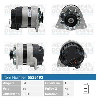 Laturi 14V 34A Meat & doria 5525192 - austin, ford, ldv, mg, morris, rover, talbot, triumph, vauxhall - OE 07212451, 703F-10346-AA, 71BB-10300-AA