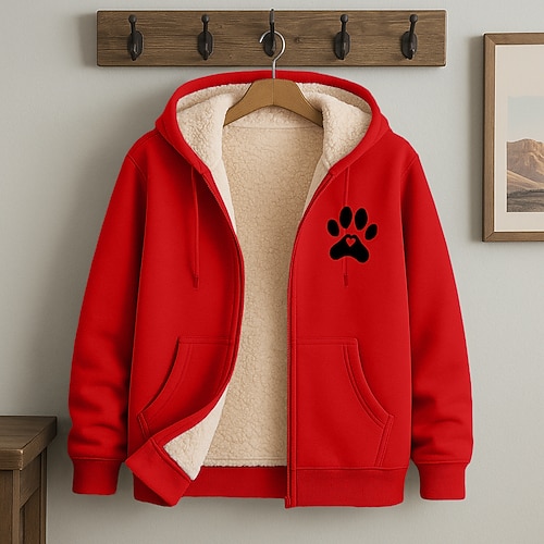 Per uomo Felpa con cappuccio a zip intera Felpa con cappuccio e zip Giacca in Pile Felpa con cappuccio in pile Aalbicocca Nero Vino Rosso Blu Con Cappuccio Semplice Stampe Grafiche Zampa Cerniera