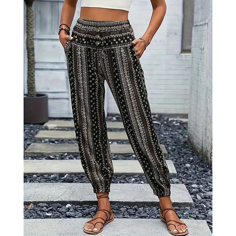 Women's Tapered pants Chinos Vacation Streetwear Casual Full Length Medium Waist Graphic Elastic Waistband Printing Comfy Micro-elastic Daily Outdoor Street Dark Brown White Green Brick red Summer
