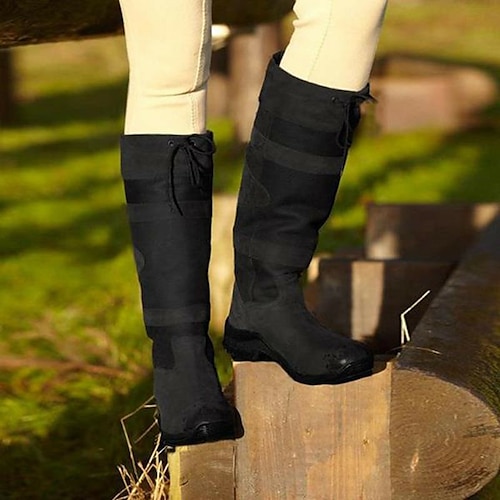 Damenreitstiefel aus braunem Kunstleder mit verstellbarem Kordelzug – hohe Outdoor-Reitstiefel für den Winter und die Freizeit