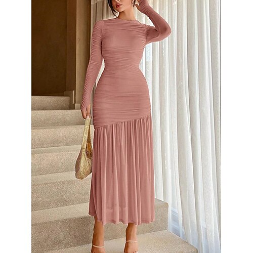 Per donna Abito maxi Tubino Casual Quotidiano Uscire Vestibilità regolare Semplice Manica Lunga Girocollo Rosa chiaro Champagne Vino Marrone Autunno Inverno
