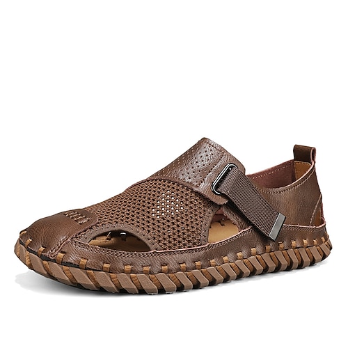 sandali da uomo in similpelle marrone con punta chiusa – comodi sandali slip-on per rilassanti attività all'aperto
