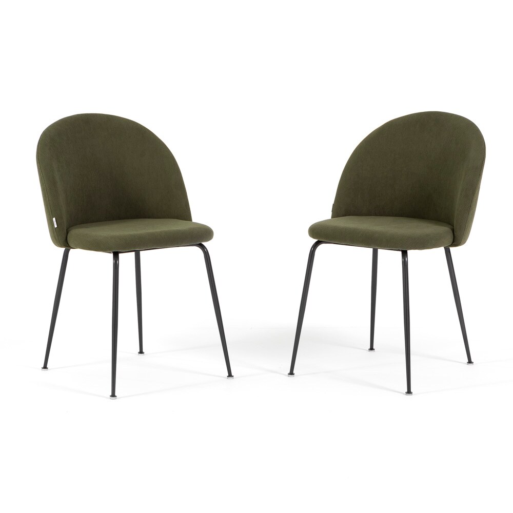 RATTATAN Set aus 2 Innenstühlen aus Cordsamt mit Metallbeinen, gepolstert, ideal für Küche, Esszimmer, Bar oder Restaurant – Sara – Grün/Dunkelgrau