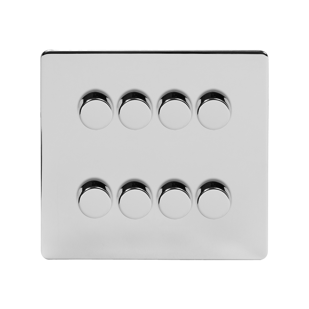 Soho Lighting Polished Chrome 8 Gang 2 Way Intelligent Trailing Dimmer Switch Screwless - Size: H 86mm X W 86mm