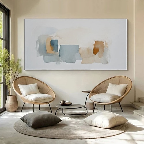 dipinto astratto blu beige di grandi dimensioni fatto a mano su tela, grande arte murale beige e blu, arte murale wabi sabi beige con texture, dipinto beige, arte con texture marrone