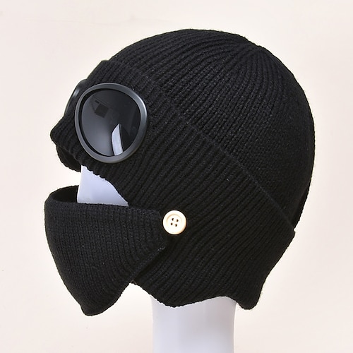 berretto da pilota autunnale e invernale con paraorecchie, berretto spesso e caldo in maglia per donna, stile coreano, con mascherina, foderato in pile, cappello in maglia per il freddo, per attività