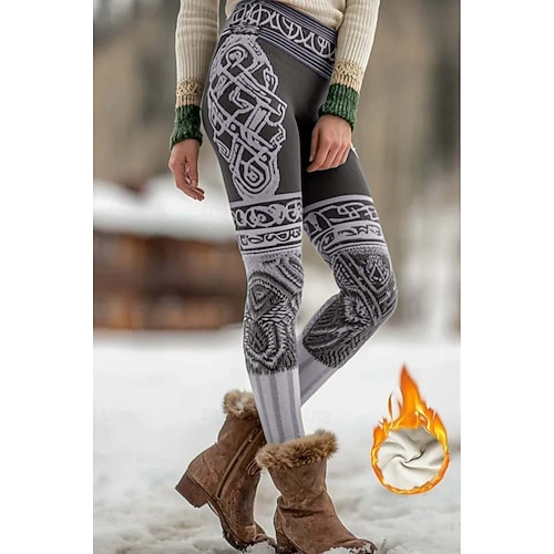 Leggings da donna Viking Boho foderati in pile vacanza stile etnico vintage a lunghezza intera vita alta patttern geometrico stampa 3D termico caldo antivento comodi elasticizzati casa quotidiana