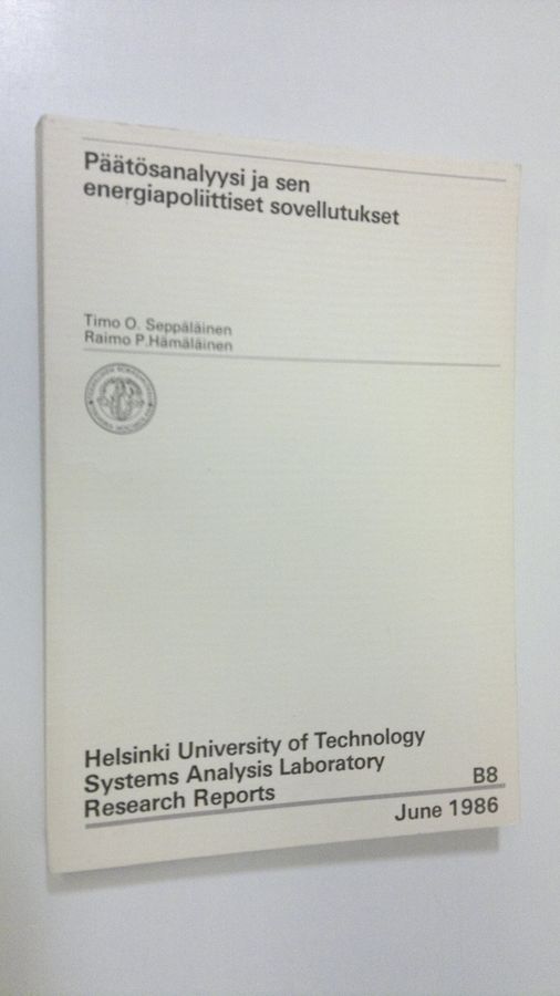 Timo O. Seppäläinen : Päätösanalyysi ja sen energiapoliittiset sovellutukset
