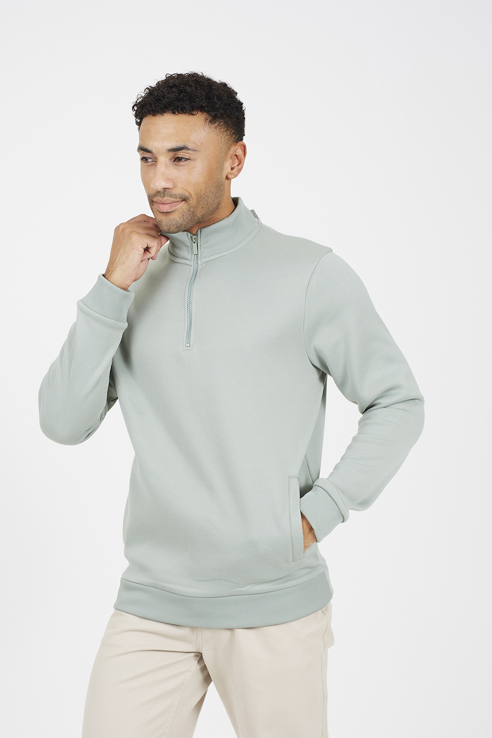 Brave Soul Mens Green Funnel Neck 1/4 Zip Sweatshirt - Size X-large | Brave Soul Sale | Discount Designer Brands