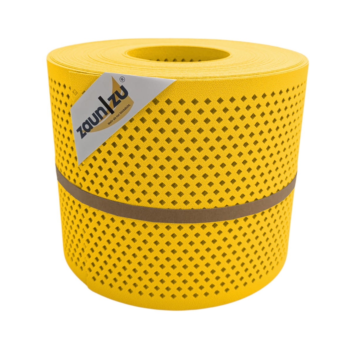 zaun|zu® Sichtschutzstreifen Premium Gelocht Diamant-Muster für Doppelstabmatten Gelb 26m