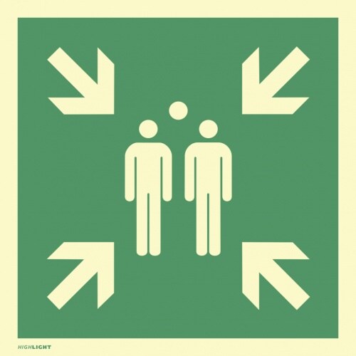 Dreifke® Schild, Sammelstelle, ISO 7010, Alu 1,8 mm, langnachleuchtend, 160-mcd, 400x400 mm