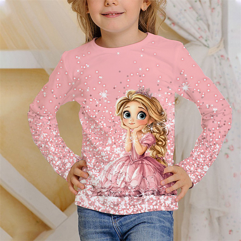 Girls' 3D Graphic Cartoon T shirt Tee Long Sleeve Spring Fall Fashion Basic Kids 4-12 Years Crew Neck Outdoor Casual Daily Regular Fit