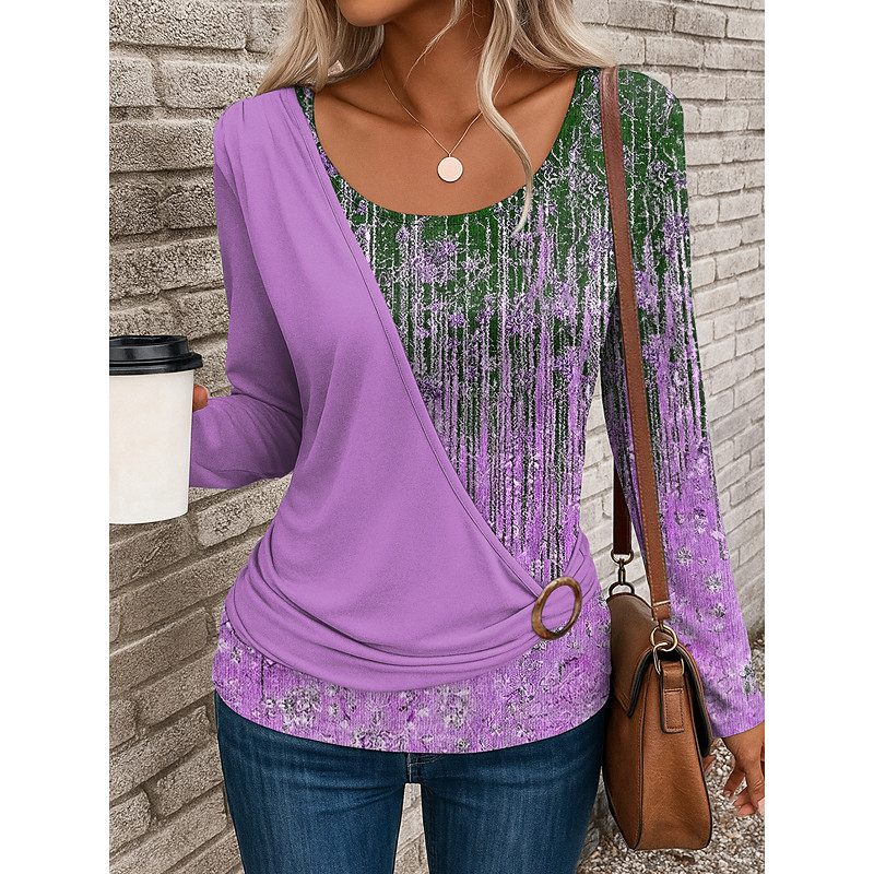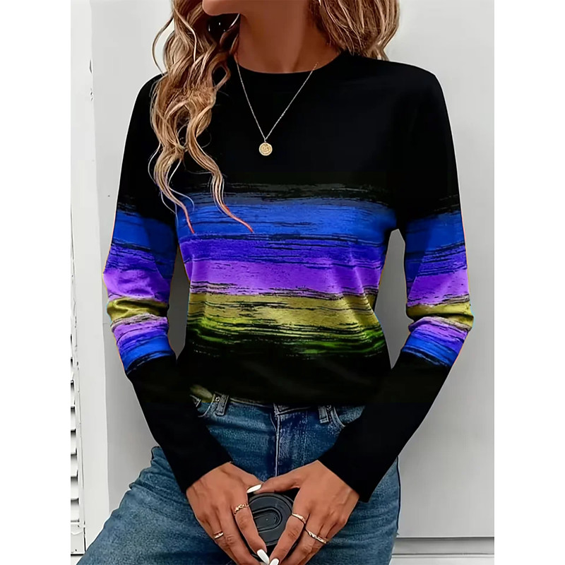 Women's T Shirt Ombre Geometric Vintage Casual Long Sleeve Crew Neck Regular Tops Daily Patchwork Print Pink Blue Purple Green Khaki Summer Fall Winter