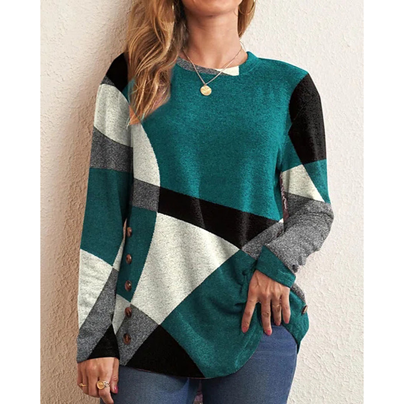 Women's Blouse Color Block Vintage Stylish Long Sleeve Crew Neck Regular Tops Daily Holiday Going out Patchwork Buttons Purple Green Gray Fall Winter
