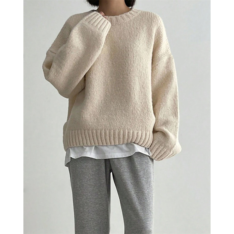 Women's Sweater Casual Soft Pure Color Cable Crew Neck Knitted Long Sleeve Regular Tops Knit Outdoor Daily Weekend Blue Beige Fall Winter