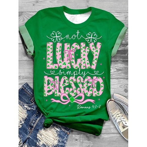 T-shirt da donna per il giorno di San Patrizio floreale alla moda classica casual maniche corte collo tondo tops regolari per uscite quotidiane stampa verde estate primavera