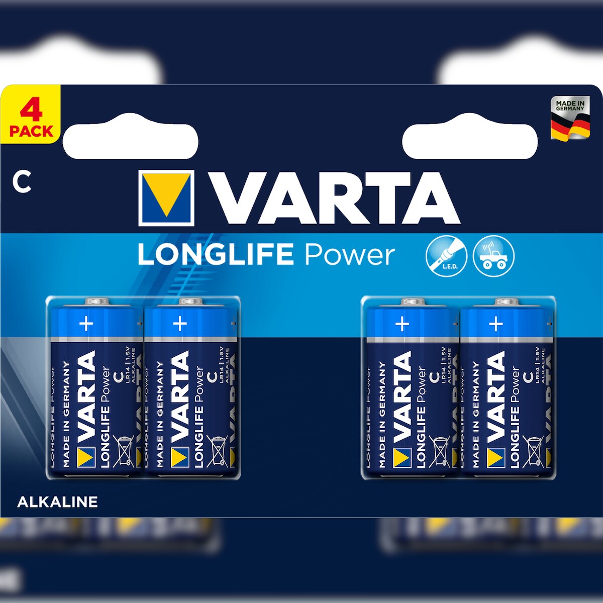 Varta Batterie Alkaline, Baby, C, LR14, 1.5V Longlife Power, Retail Blister (4-Pack)
