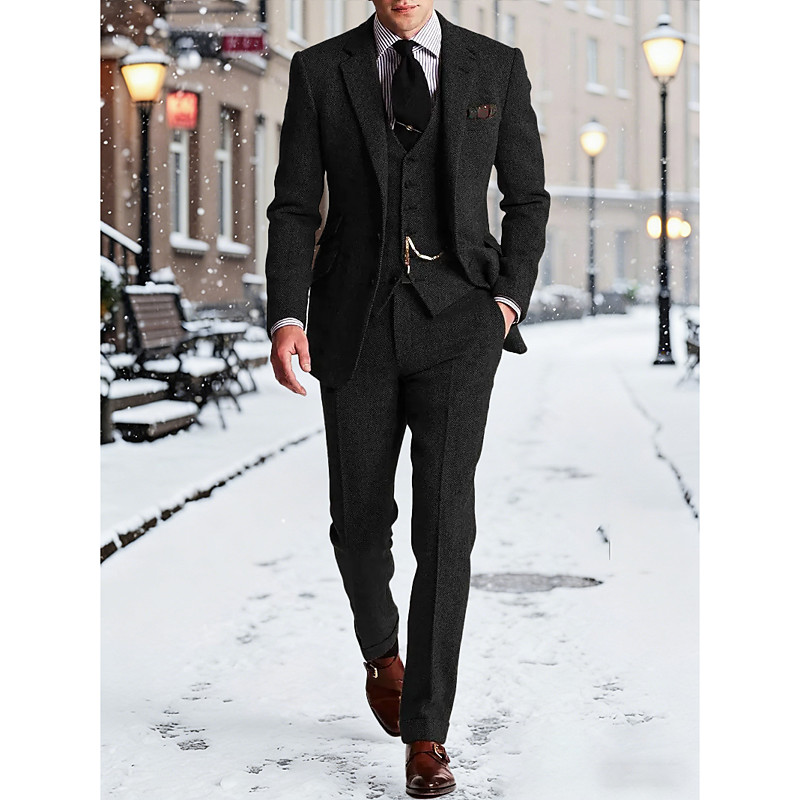 Men's BlazerVestDress Pants Blazer Business Work Wedding Fashion Streetwear Fall Winter Terylene Solid Color 3-Piece Single Breasted Blazer Black Champagne Pink Burgundy