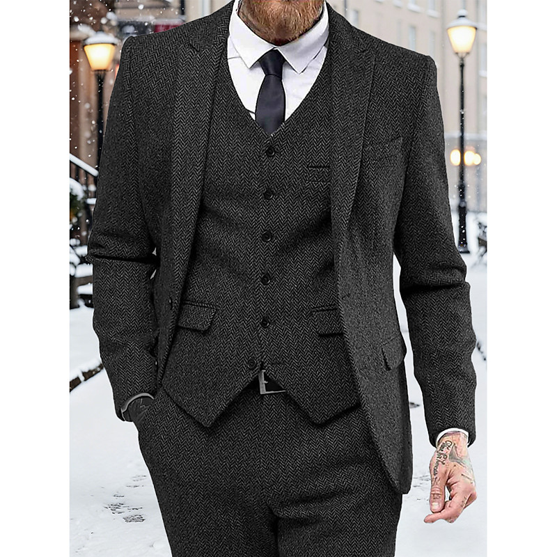 Men's BlazerVestDress Pants Blazer Business Work Wedding Fashion Streetwear Fall Winter Terylene Plain 3-Piece Single Breasted Blazer Black Champagne Pink khaki