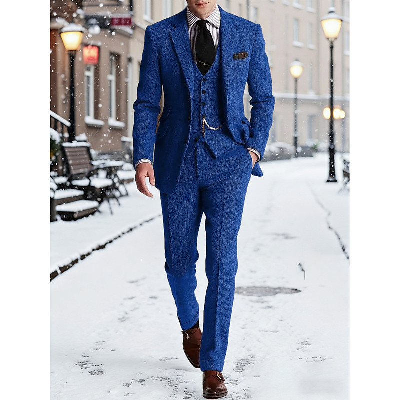 Men's BlazerVestDress Pants Blazer Suits Business Work Wedding Fashion Streetwear Fall Winter Nylon Solid Color 3-Piece Single Breasted Blazer Black Burgundy Navy Blue Royal Blue