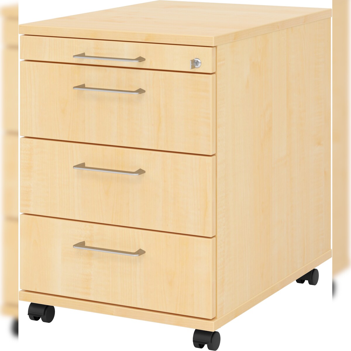 bümö Rollcontainer mit Schubladen, Container abschließbar aus Holz in Ahorn - Rollwagen für's Büro als Schreibtisch Unterschrank, Bürocontainer od.
