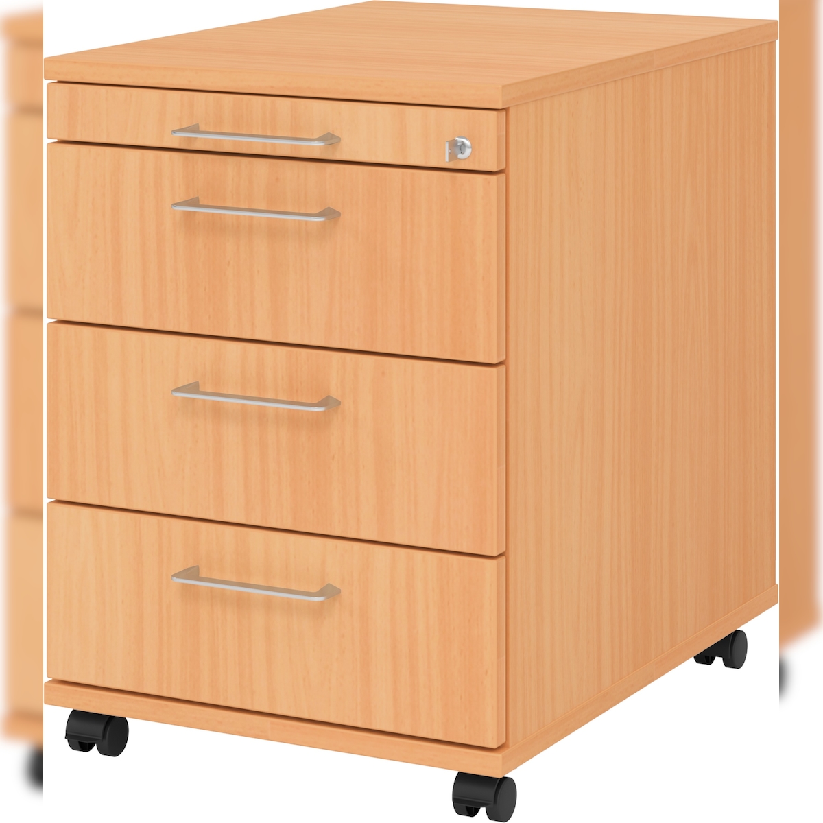 bümö Rollcontainer mit Schubladen, Container abschließbar aus Holz in Buche - Rollwagen für's Büro als Schreibtisch Unterschrank, Bürocontainer od.