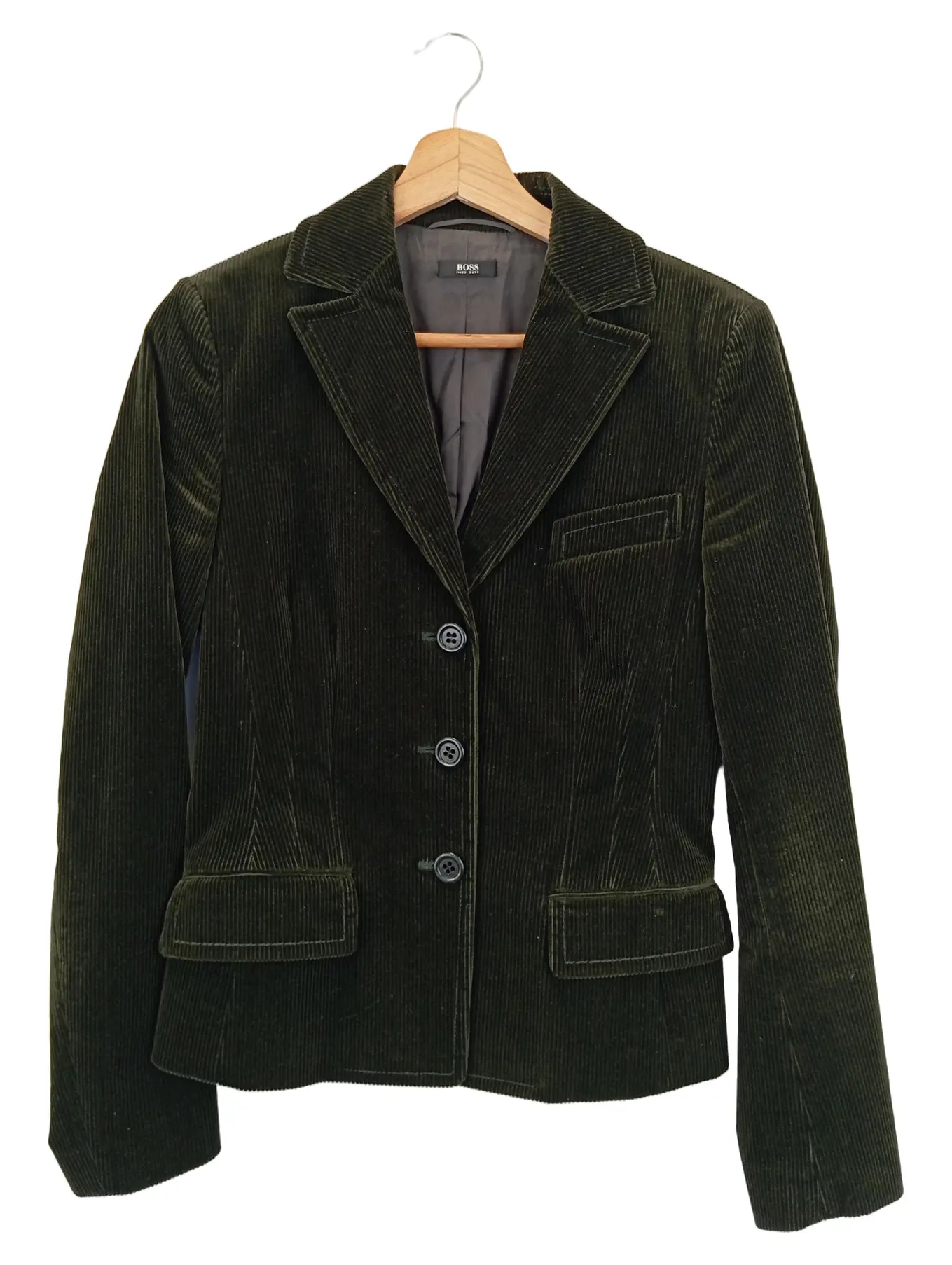 HUGO BOSS Damen Cord-Blazer Gr. 36 Grün Baumwollmix