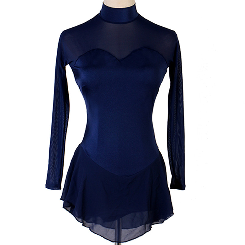 Figure Skating Dress Women's Girls' Ice Skating Dress Outfits Dark Navy Patchwork Mesh Spandex High Elasticity Practice Professional Competition Skating Wear Handmade Classic Crystal / Rhinestone