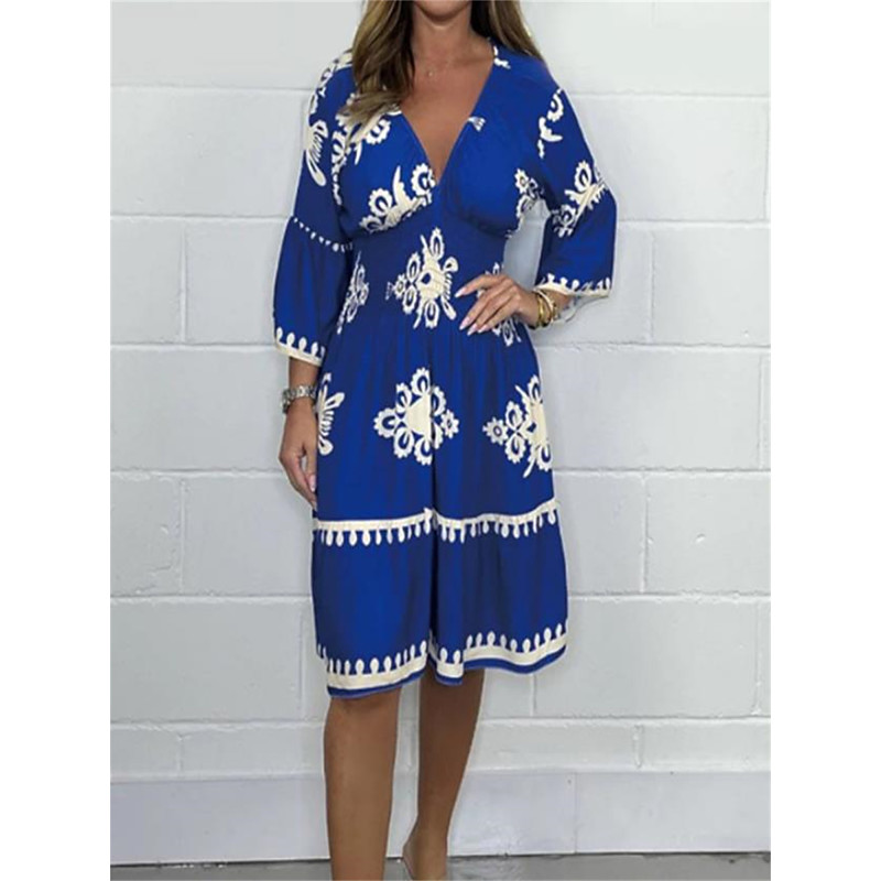 Women's Dress Set Casual Dress Swing Dress Print Dress Fashion Modern Floral Print Midi Dress Half Sleeve V Neck Outdoor Date White Royal Blue Blue Summer Regular Fit