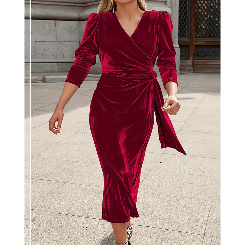 Women's Midi Dress Christmas Dress Velvet Dress Party Dress Cocktail Dress Elegant Fashion Modern Evening Party Party Date Regular Fit Plain Long Sleeve Crew Neck Black Wine Green Dark Blue Fall