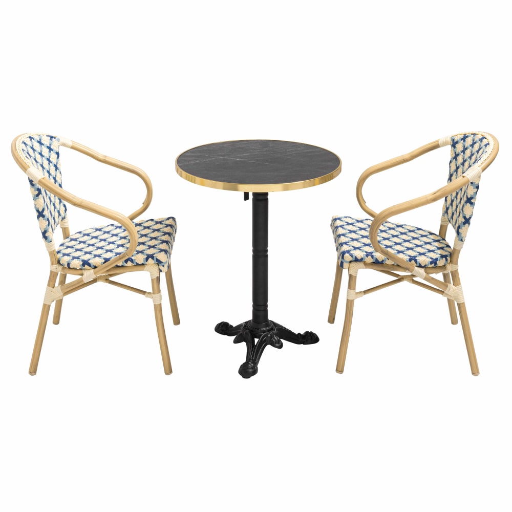 Set composto da tavolo da terrazza in marmo nero e 2 sedie blu