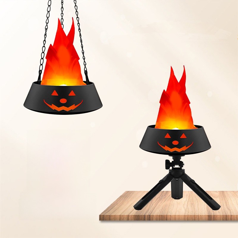 Pumpkin Fake Flame Light 3D Dynamic Fire Effect Flame Light LED Halloween Fire Light for Indoor/Outdoor Suspension or Desktop Decor Spooky Party Prop Atmosphere Lighting for Bar Stage Home
