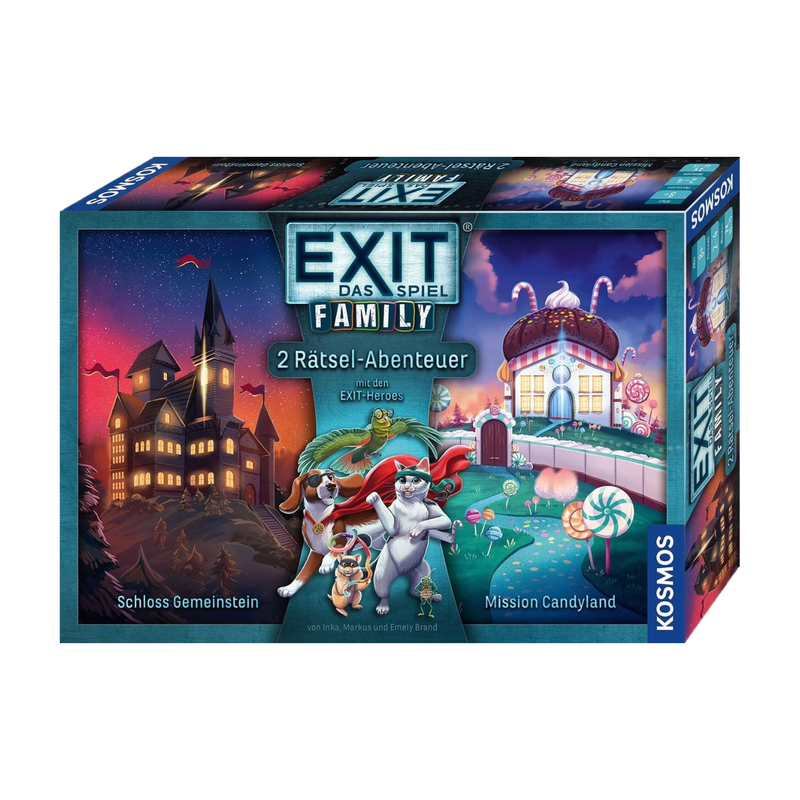 KOSMOS 684662 EXIT® - Das Spiel Family, Zwei Rätselabenteuer Schloss Gemeinstein + Mission Candyland, Escape Room Spiel für die Familie, EXIT Game Familie und Kinder ab 8 Jahre