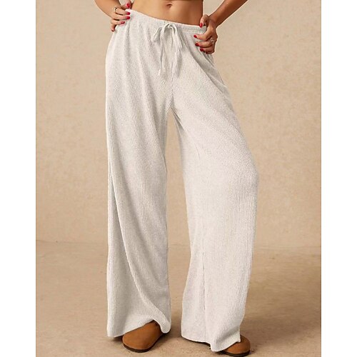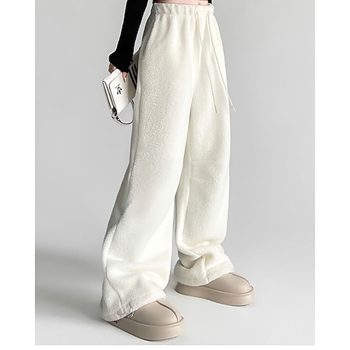 Per donna Culotte Gamba Larga Pantaloni in Pile Streetwear Casual Lunghezza intera Vita media Semplice Tasca Elastico in vita Coulisse alla gamba Confortevole Micro-elastico Vacanza Streetwear