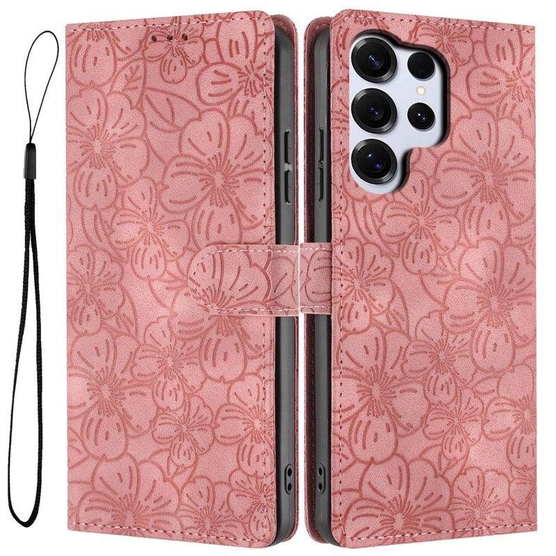 Samsung Galaxy S26 Ultra Plånboksfodral Blomster Mönster Konstläder - Rosa
