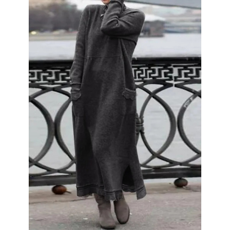 Women's Maxi Dress Shift Dress Casual Vacation Going out Loose Fit Solid Color Long Sleeve Turtleneck Black Wine Dark Grey Gray Spring Fall Winter