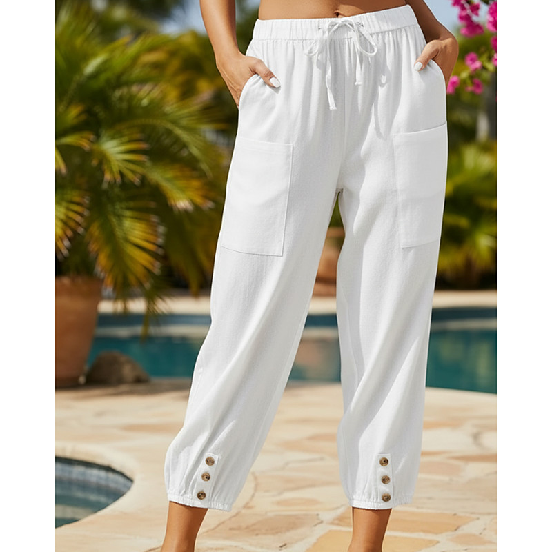 Women's Cotton Linen Pants Chinos Streetwear Casual Full Length Medium Waist Plain Drawstring Pocket Comfortable Inelastic Daily Outdoor Vacation Blue Grey Black White Summer Spring Loose Fit
