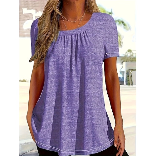 T-Shirt Donna Colore Unito Giornaliera Stile Casual Manica Corta Collo a Giro Top Regolari Giornalieri Blu Rosa Viola Estate Primavera