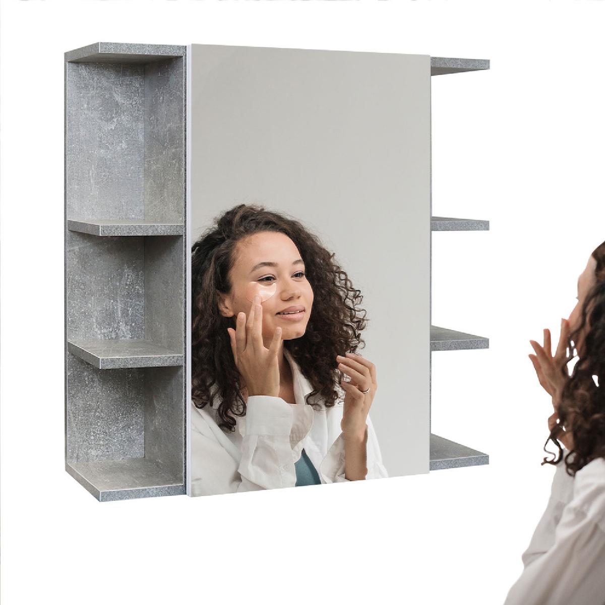 T-MAX Spiegelschrank `Julien` Marmor Optik, 1-türig, mit 6 Seitenflächen Hängeschrank 62x64x21cm