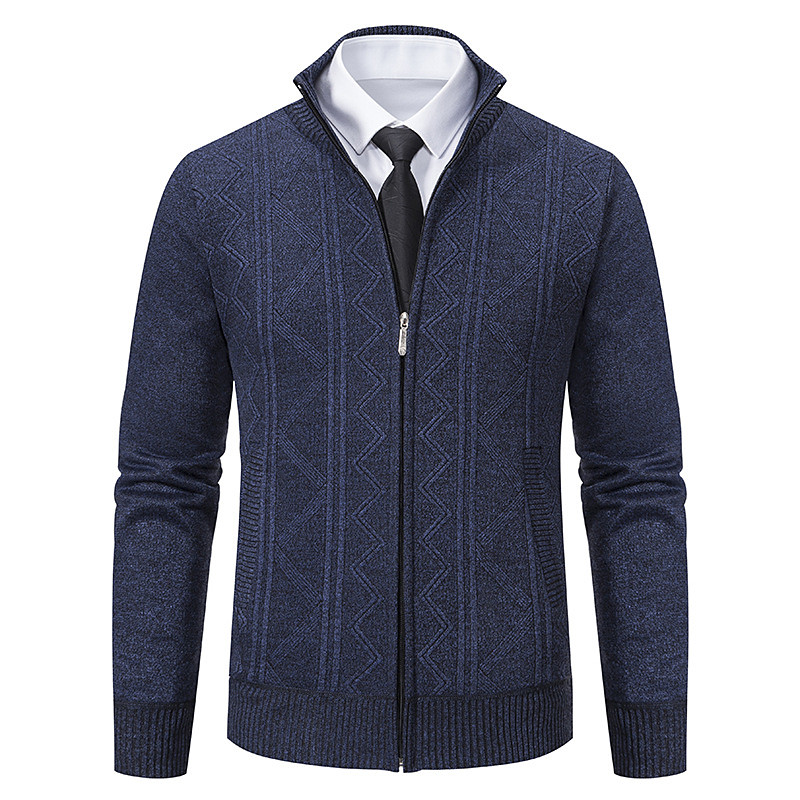 Men's Sweater Cardigan Sweater Ribbed Cable Knit Regular Tops Knitted Plain Stand Collar Vacation Fashion Casual Daily Wear Clothing Apparel Fall Winter Blue Black L XL 2XL
